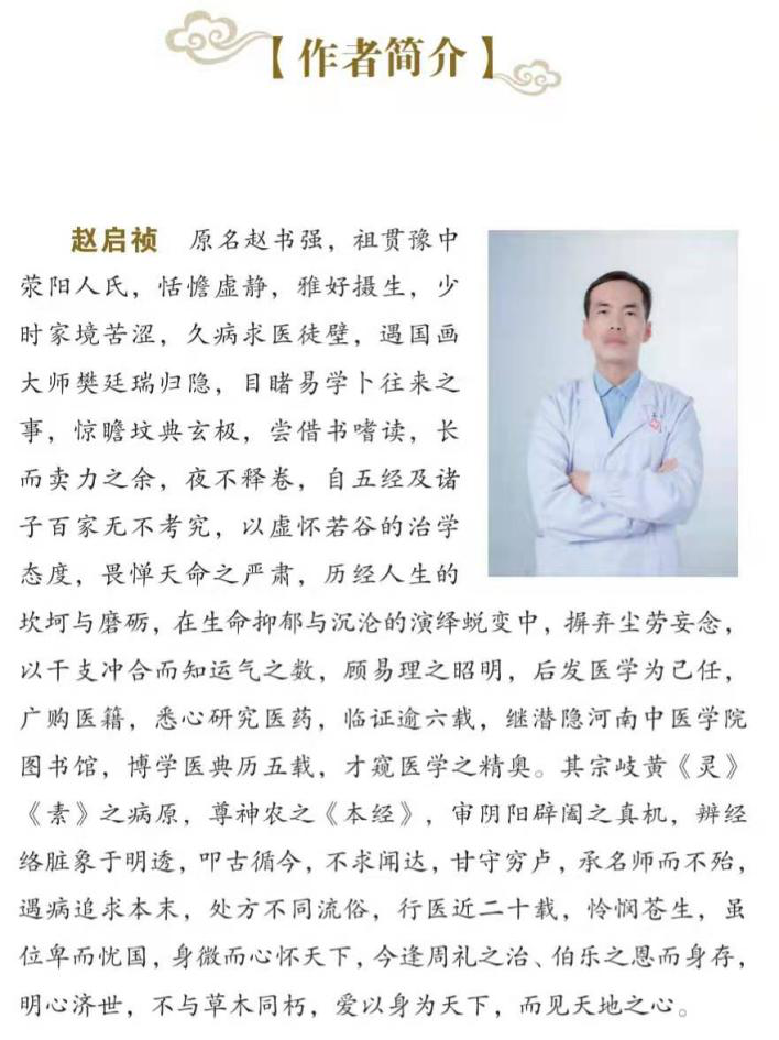 趙啟禎 原名趙書強(qiáng),河南滎陽(yáng)市人,我國(guó)當(dāng)代中醫(yī)藥學(xué)專家。其幼患頑疾,諸醫(yī)無策,中學(xué)時(shí)期,知遇我國(guó)國(guó)畫大師樊廷瑞先生,每放學(xué)歸家,常借書嗜讀,學(xué)習(xí)易經(jīng)之術(shù),并由易入醫(yī)。其父雙手殘疾,后因腦炎患癲癇后遺癥,無錢供其讀書,他高一輟學(xué)后,靠賣力為生,賣力之暇,廣購(gòu)醫(yī)藥方書,發(fā)憤學(xué)醫(yī),勤力不怠,以身試藥,積數(shù)載之久。其父癇疾在其勸說下服藥,霍然而愈,遂名動(dòng)鄉(xiāng)里,凡遠(yuǎn)近病人有求治的,不論貴賤,均為其治療,療效顯著,聲明逐漸昭彰。07年夏初,他辭去工作,師從河南著名針灸學(xué)家劉會(huì)生教授,后潛隱該校圖書館,整理本草、針灸等醫(yī)學(xué)文獻(xiàn)筆記近五載,才窺醫(yī)學(xué)之玄奧。在其二十余年的醫(yī)涯中,精于診斷而明審方劑,治頑疾無數(shù),以口碑相傳,診病之余,去中藥材市場(chǎng)實(shí)地考察、辨?zhèn),并向藥農(nóng)、藥商及專業(yè)人士請(qǐng)教,筆耕不輟,于2020年11月,出版《本草滴髓》(金石部)一書。