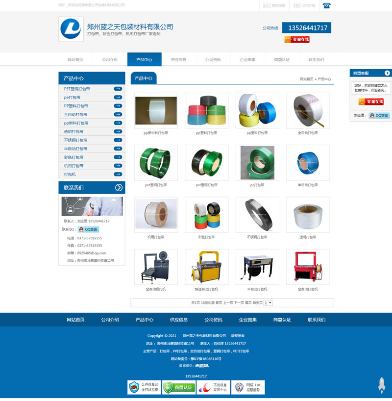 鄭州藍(lán)之天包裝材料有限公司主營打包帶,包裝機(jī)等包裝材料,市場針對(duì)全國,該網(wǎng)站為藍(lán)之天打包帶單品網(wǎng)站。