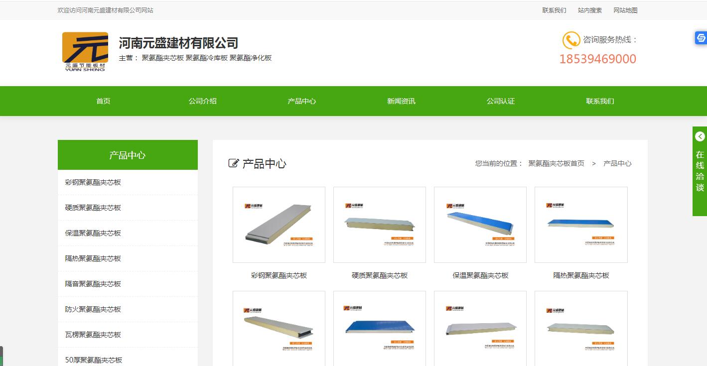 河南元盛建材zzjiuyang.cn蜂巢網(wǎng)站制作完成,該網(wǎng)站主要是聚氨酯板單品網(wǎng)站,河南元盛建材有限公司是我們偉置的老客戶,他家主要經(jīng)營(yíng)聚氨酯夾芯板,聚氨酯冷庫(kù)板,聚氨酯凈化板。有需要的客戶可以直接和元盛曹經(jīng)理進(jìn)行聯(lián)系。