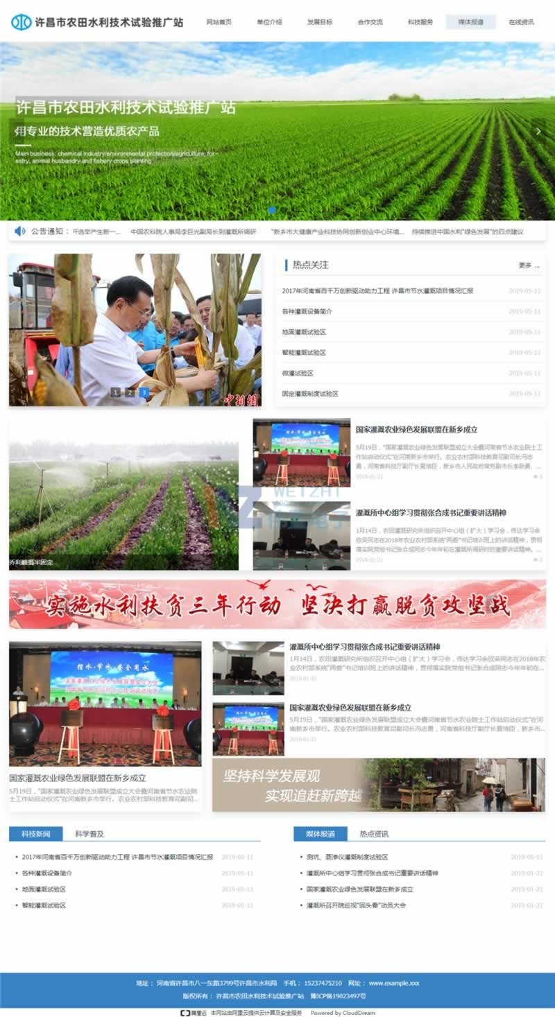 網(wǎng)站首頁重點(diǎn)展示了農(nóng)田水利推廣站重點(diǎn)信息,首頁banner用了稻田的圖片+公司名,更能體現(xiàn)農(nóng)田水利的主信息。該網(wǎng)站頁面比較干凈,板塊設(shè)計(jì)合理。