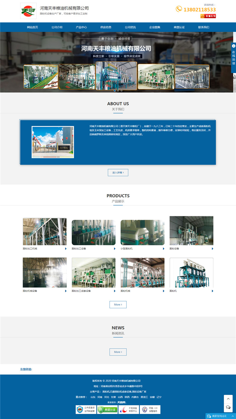 河南天豐糧油機(jī)械有限公司易站通網(wǎng)站制作完成