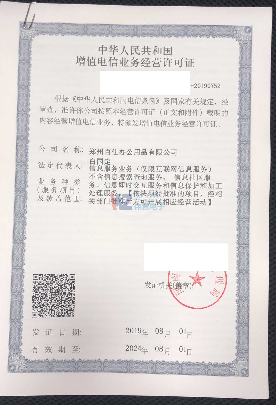 百仕辦公增值電信業(yè)務經營許可證申請成功